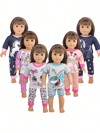 1 pieza Ropa de muñeca para muñecas de 18 pulgadas, pijamas con estampado de animales de dibujos animados lindos para muñecas con diseños de gato/jirafa/tiburón/unicornio, conjunto de pijama de manga larga o conjunto de pantalones cortos de manga corta, juguete de regalo de cumpleaños para muñecas de niños y niñas