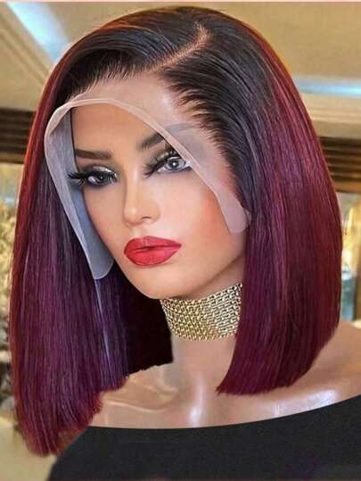 Straight Bob 13 X 4 Pelucas frontales de encaje 12 pulgadas 1B99J Peluca de cabello humano corto Color Ombre - S1/99JC - Añade 4