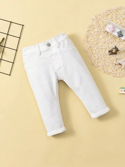 SHEIN Explorewe Jeans elásticos básicos diarios unisex para bebé - Blanco - Añade 1