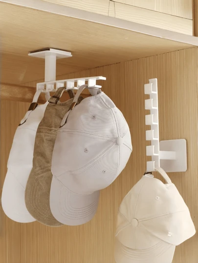 Soporte organizador sobre la puerta para gorras de béisbol, ahorro de espacio - Organizador de sombreros de plástico duradero para armario y entrada, montaje en pared de color blanco con múltiples ganchos para un almacenamiento ordenado de sombreros, soporte para sombreros - Blanco - Añade 1