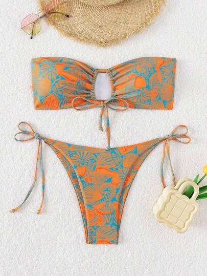 Swim Vcay Conjunto de bikini de amarrar con estampado tropical para playa en verano - Multicolor - Añade 1