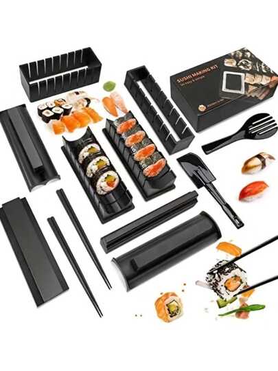 Juego para hacer sushi, incluye rodillo de sushi, set de plástico premium, kit de herramientas para sushi, molde para enrollar sushi, herramientas DIY para hacer rollos de sushi (adecuado para uso doméstico principiante), útiles escolares - Multicolor - Añade 11