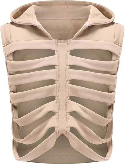 Sudadera con capucha de esqueleto oversize unisex, sudadera sin mangas recortada para hombres y mujeres, chaleco con capucha estilo gótico con calavera - Caqui - Añade 1