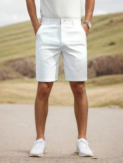 Pantalones cortos de golf casuales de moda para hombres, shorts Bermuda de longitud hasta la rodilla, transpirables, duraderos y versátiles, de color liso - Blanco - Añade 1