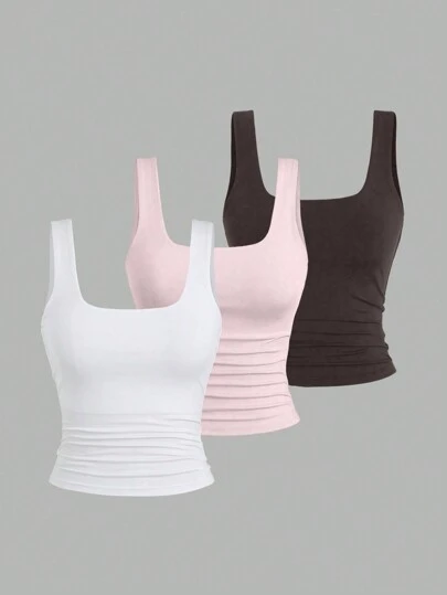 Sweetra Camiseta de tirantes femenina con cuello cuadrado, volumen y ajuste ceñido - Multicolor - Añade 3