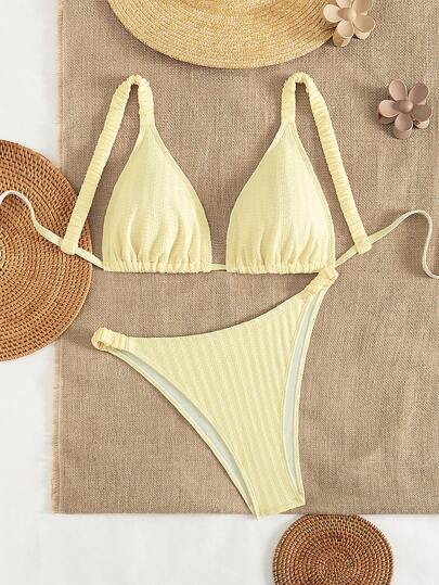 Swim Mod Conjunto de bikini amarillo a rayas informal para mujer talla grande - Amarillo - Añade 3