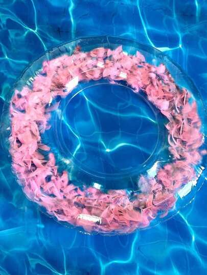 Flotador de natación, aro de natación, flotador de verano para playa, círculo inflable para nadar en piscina o agua, flotador transparente con diseño de pluma, artículo esencial y accesorio para la playa - Rosa - Añade 10