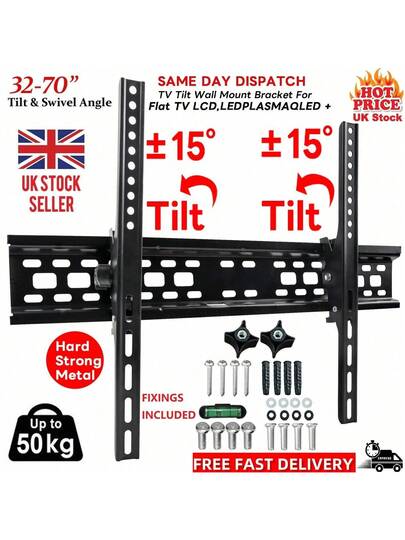 TV Wall Bracket Mount Slim Tilt For 32 36 40 50 55 Up To 72 Inch Universal Fit - Negro - Añade 1