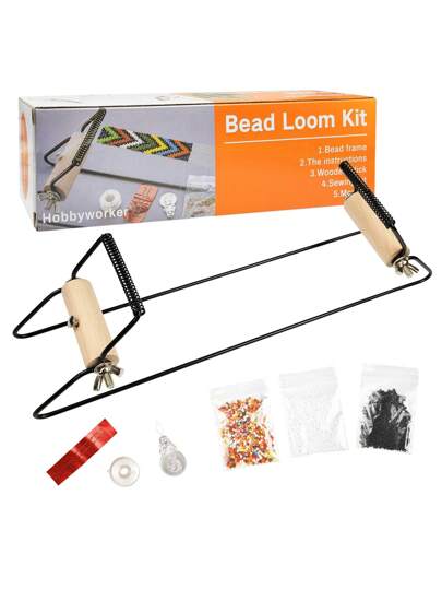 HOBBYWORKER Kit De Telar De Cuentas De Metal De Ancho Extra Para Aficionados, Que Incluye Telar Extra Ancho, Hilo, Agujas Y 3 Bolsas De Cuentas De Vidrio Para Pulseras, Collares , Cinturones Y Más - telar de cuentas pequeño - Añade 1