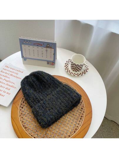 LACE MONDE Sombrero De Punto Con Borde Enrollado Grueso, Suave Y Cálido Con Gran Circunferencia De Cabeza Y Protección De Oídos Para Invierno Casual - Negro - Añade 7