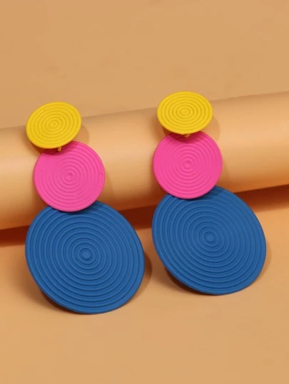 Pendientes largos redondos a capas - Multicolor - Añade 1