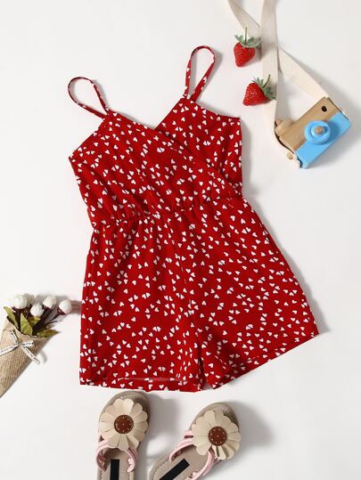 SHEIN Mono De Tirantes Con Estampado De Corazones Para Niñas Pequeñas Con Cruzado En La Parte Delantera - Burdeos - Añade 4