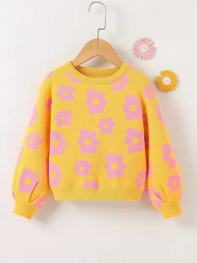 Niñas Jersey con patrón floral con fruncido de hombros caídos - Mostaza Amarilla - Añade 1