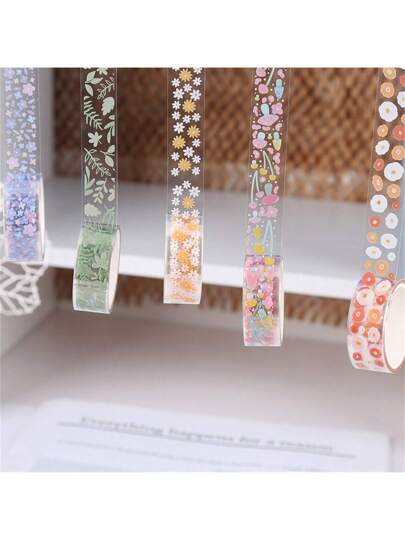 Pegatinas de patrón floral y papel transparente PET, caja de regalo de cinta washi decorativa, suministros de manualidades de scrapbooking - Multicolor - Añade 5