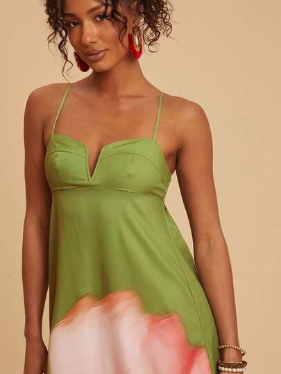 Travachic Vestido de verano elegante con estampado floral sin mangas para vacaciones - Verde - Añade 2