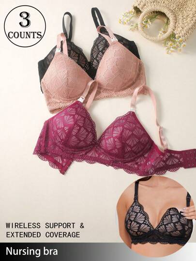Set de 3 piezas de ropa interior de maternidad cómoda de encaje para mujeres - Albaricoque - Añade 3