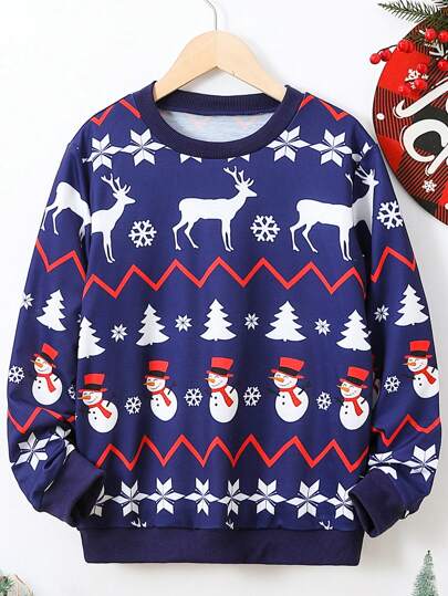Chico preadolescente Sudadera con estampado de Navidad - Azul - Añade 1