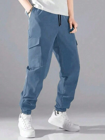 Pantalones escolares con estilo casual y cintura elástica con cordón para niño preadolescente - Neblina azul - Añade 1