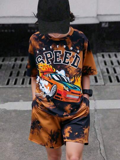 Conjunto de pantalón corto y camisa de manga corta informal y holgado para niño preadolescente - Negro - Añade 7