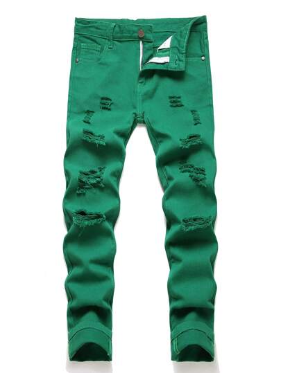 Jeans rectos con pierna para niño preadolescente con roturas y deshilachados - Verde - Añade 4