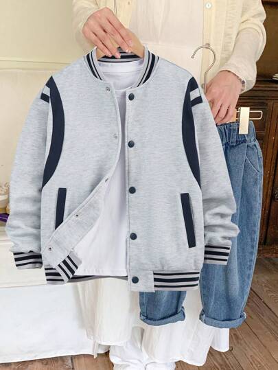Chaqueta deportiva informal con bloques de color para niños preadolescentes, adecuada para ir al trabajo, la escuela, el uso diario, los viajes y los deportes, apta para la temporada de otoño/invierno - Gris - Añade 1
