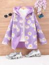 Sparklyn Chaqueta versátil de estilo coreano para niñas, con capucha, de manga larga, de un solo pecho, con bolsillo decorativo, estampado floral completo y forro de unicolor