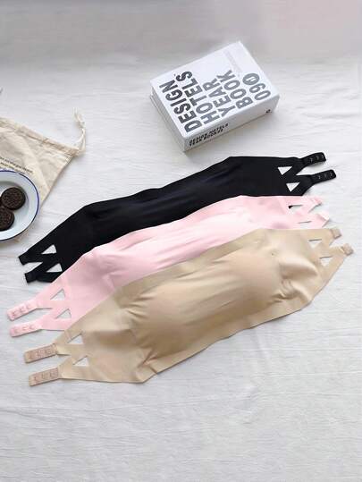Niña preadolescente Sostén sin tirantes sin costuras de seda helada con envoltura del pecho, transpirable, anti-luz con hebilla y sin cables - Multicolor - Añade 3