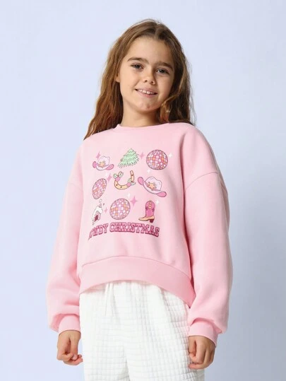 SUMWON Sudadera navideña estilo occidental con diseño de bola de discoteca, herradura festiva y destellos - Suéter de invierno informal con brillo para fiesta - Rosa - Añade 1