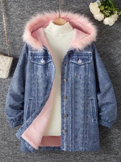 Chaqueta informal con capucha, forrada térmicamente y con estampado de peluche para niñas preadolescentes - Multicolor - Añade 4