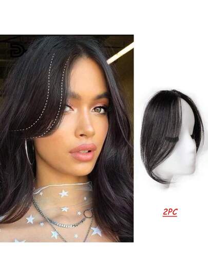 Dos piezas de extensiones de cabello con clip invisible para crear flequillo - Extensiones de cabello para flequillo para crear un aspecto natural y volumen, una peluca elegante para que las mujeres la usen todos los días - Negro - Añade 7