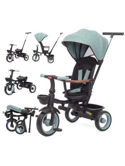 UBRAVOO 7 en 1 Bicicleta Triciclo Plegable y Multifuncional para Niños con Empujadores de Mano y Cinturón de , 360 Grados de Rotación para Sentarse y Tumbarse, Juguete para Niños 10 Meses-6 Años - Verde - Añade 1