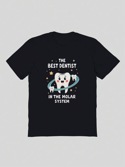 Camiseta de algodón puro cómoda para hombre con diseño de diente de dentista - Negro - Añade 5