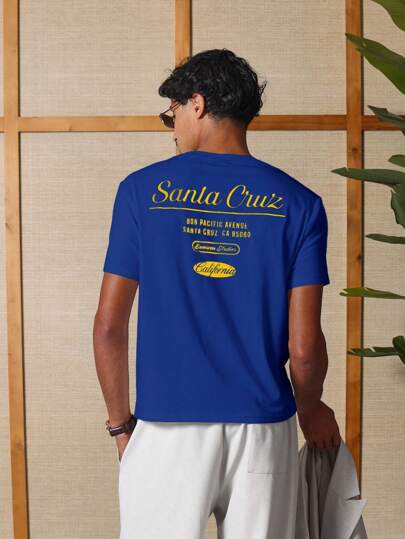 SUMWON Camiseta de manga corta de corte ajustado Estilo clásico de calle con estampado retro de verano de Santa Cruz Pacific Avenue California - Azul - Añade 1