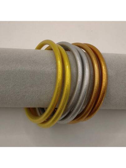 Set de 6 piezas de pulseras tipo brazalete de gelatina, pulseras apilables de silicona con purpurina de estilo lindo y ligero para fiestas, para mujeres - Multicolor - Añade 11