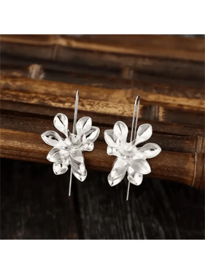 1 par de pendientes con estampado floral de estilo palaciego vintage, elegantes y personalizados, pendientes de moda para fiestas para mujeres - Plata antigua - Añade 4