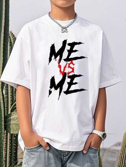 Camiseta informal de manga corta con cuello redondo y estampado gráfico para niños y adolescentes, top de verano - Blanco - Añade 1