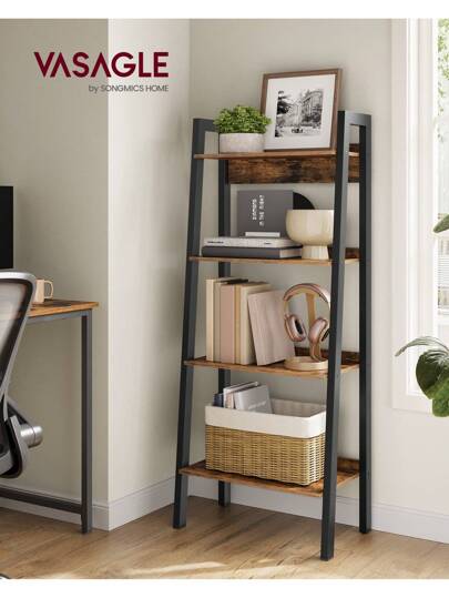 VASAGLE Ladder Shelf, Bookcase With 4 Levels, Standing Storage Unit, Office, Living Room, Bedroom, Kitchen, Industrial Style, Rustic Brown And Black - Marrón Chocolate - Añade 1