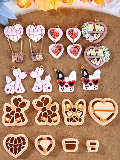 Cortador de arcilla de polímero para el Día de San Valentín para hacer joyas, herramienta de arcilla para pendientes de amor. Cortador de arcilla con colgante de perro lindo, juego de manualidades y fabricación de joyas - Cortador de arcilla - Añade 14