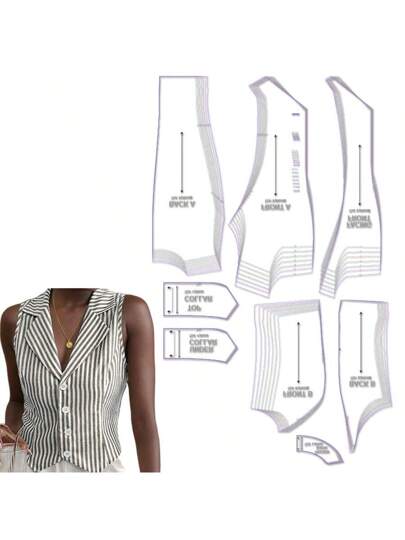 Vest múltiples tamaños patrones de costura, escala 1: 1 patrones básicos de coser prendas de mujer, patrones para principiantes y patrones, plantillas para hacer prendas, diseños de prendas hechas a mano - Marrón - Añade 6