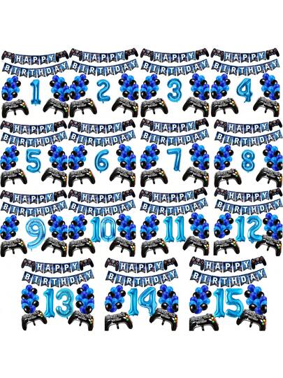 Conjunto de decoración para fiesta de cumpleaños con temática de controlador de videojuegos, que incluye globos con números del 1 al 15 y banderines - Multicolor - Añade 10