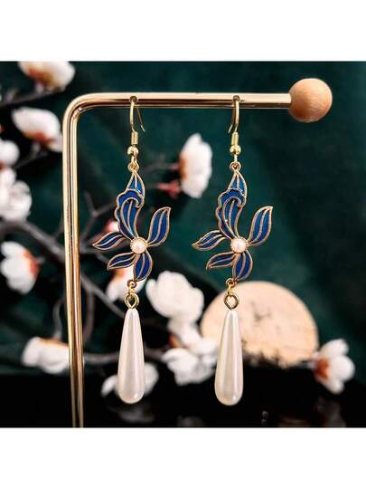 Pendientes estilo chino vintage, diseño de colgantes largos para fiesta, vacaciones y uso diario en verano - Rocío de orquídea azul - Añade 1
