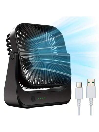 W&O Ventilador de mesa portátil con 4 configuraciones de velocidad e inclinación de 360°: potente flujo de aire, mini ventilador portátil recargable (ultra silencioso) para oficina/dormitorio/cocina; adecuado para uso en exteriores con diseño robusto. - Negro - Añade 5