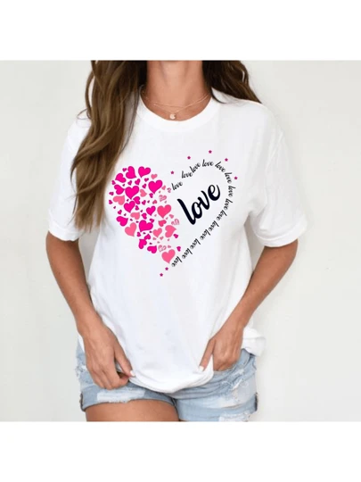 WOMEN'S T-SHIRT LOVE, HEART, PLUS SIZE FASHION - Blanco - Añade 1