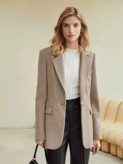 MOTF PREMIUM Blazer mezcla de lana ajustado - Caqui - Añade 5
