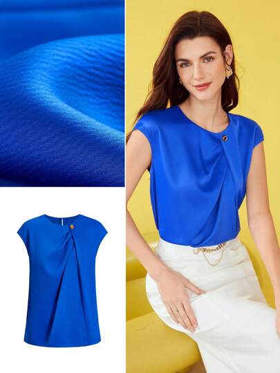 MOTF PREMIUM Blusa Plegada Tejida En Color Sólido Para Mujer - Azul - Añade 10