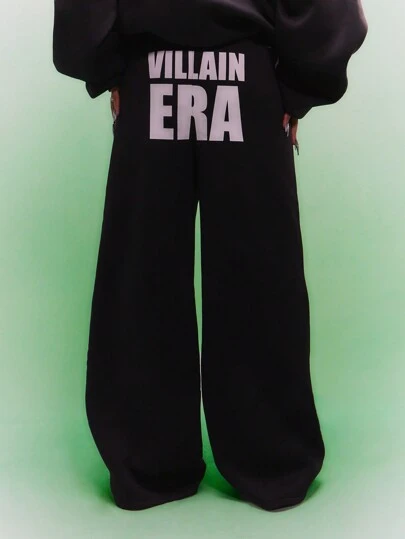 SUMWON WOMEN Pantalón de chándal de pierna ancha de la era de los villanos, ropa deportiva de diseñador, ropa informal de otoño e invierno, holgado, ancho, cálido, con cintura elástica, pantalón de declaración para entrenamiento, gimnasio y deportes - Negro - Añade 1