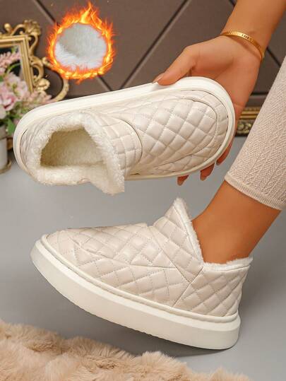 Nuevas pantuflas de felpa beige de caña alta para invierno, para uso diario y exterior, con talón completamente cubierto, forro cálido, tallas 36-45, pantuflas de interior