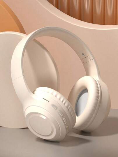Auriculares Bluetooth inalámbricos con diseño circumaural, batería de larga duración y apariencia moderna, plegables y portátiles, baja latencia para juegos - Beis - Añade 1
