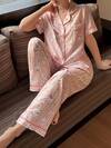 SweetSlumber Conjunto de pijama de dama con lazo rosa, manga corta y pantalón con botones