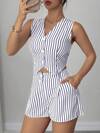 Vivid Eden Conjunto de 2 piezas informal para mujer con top tubo fruncido a rayas y pantalones cortos